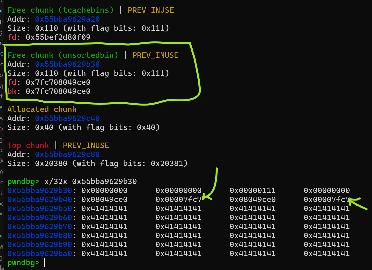 libc_ptr = read_qword(io, H9) # fd of unsorted bin chunk