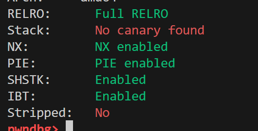 Okay, not too bad, almost all flags are enabled other than the stack canary. I will ignore the SHSTK and IBT flags; I don’t think they will be doing anything in this medium level challenge. If you want to see how I panicked the first time I saw those flags, have a look at this writeup: https://yusuftas.net/posts/htb-portaloo-writeup/