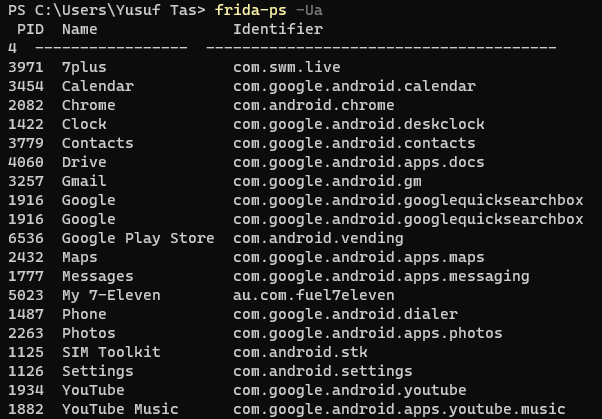 Once you can run frida commands on the attached device, you are ready to start dynamic instrumentation (love it).